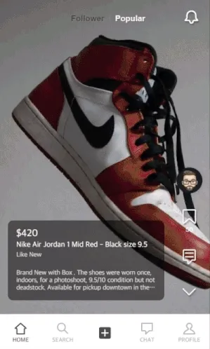 다양한 주제 토론끝에 ‘착용샷을 다각도로 보고싶을 때’가 있다는 의견이 나와 중고거래라는 큰 틀을 정하고 그 중에서도 마니아층이 뚜렷하고 한정판 거래, 리셀테크 등 중고거래 성향이 두드러진 ‘스니커즈 중고거래’로 범위를 좁혀 주제를 선정하게 되었습니다.