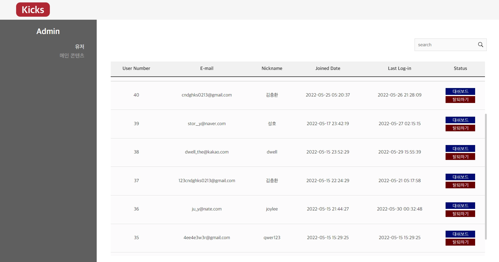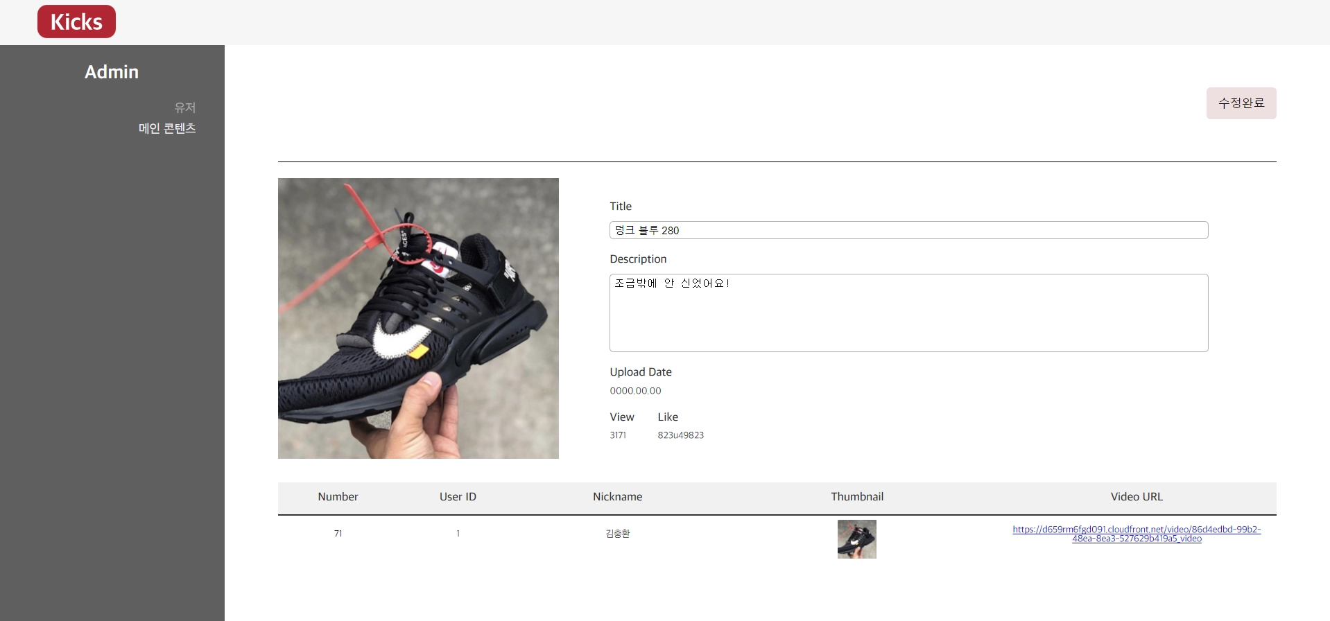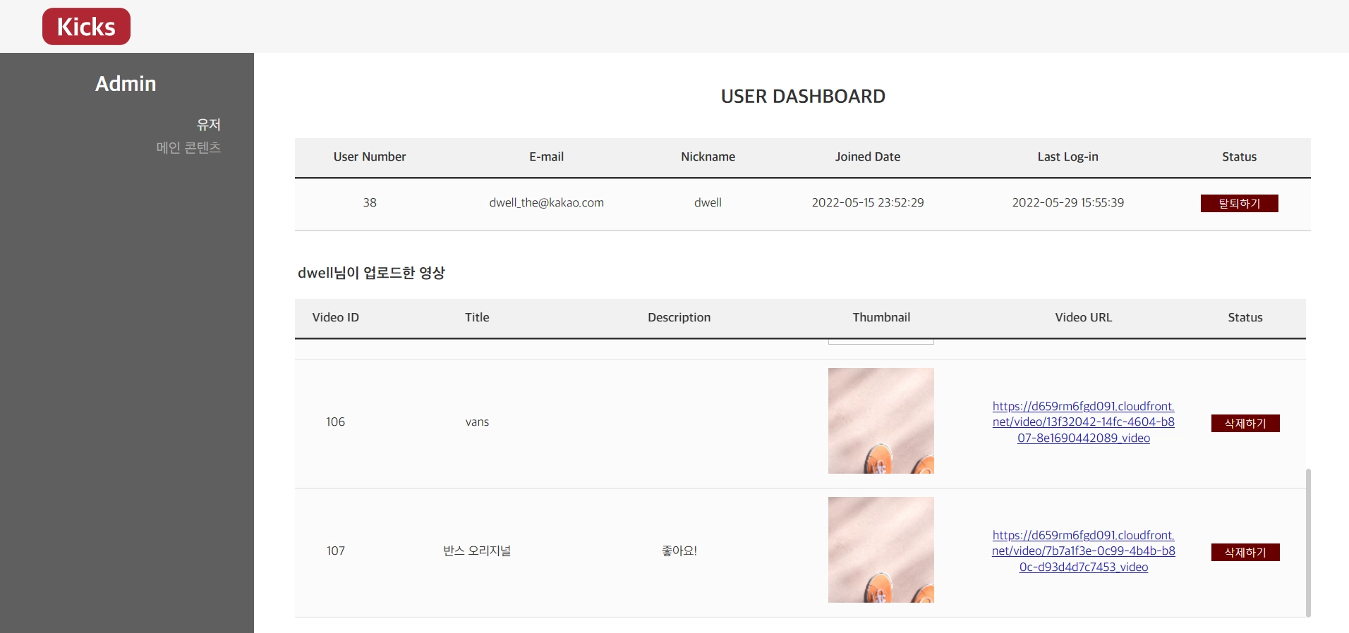 관리자 대시보드 (유저 및 영상 관리)