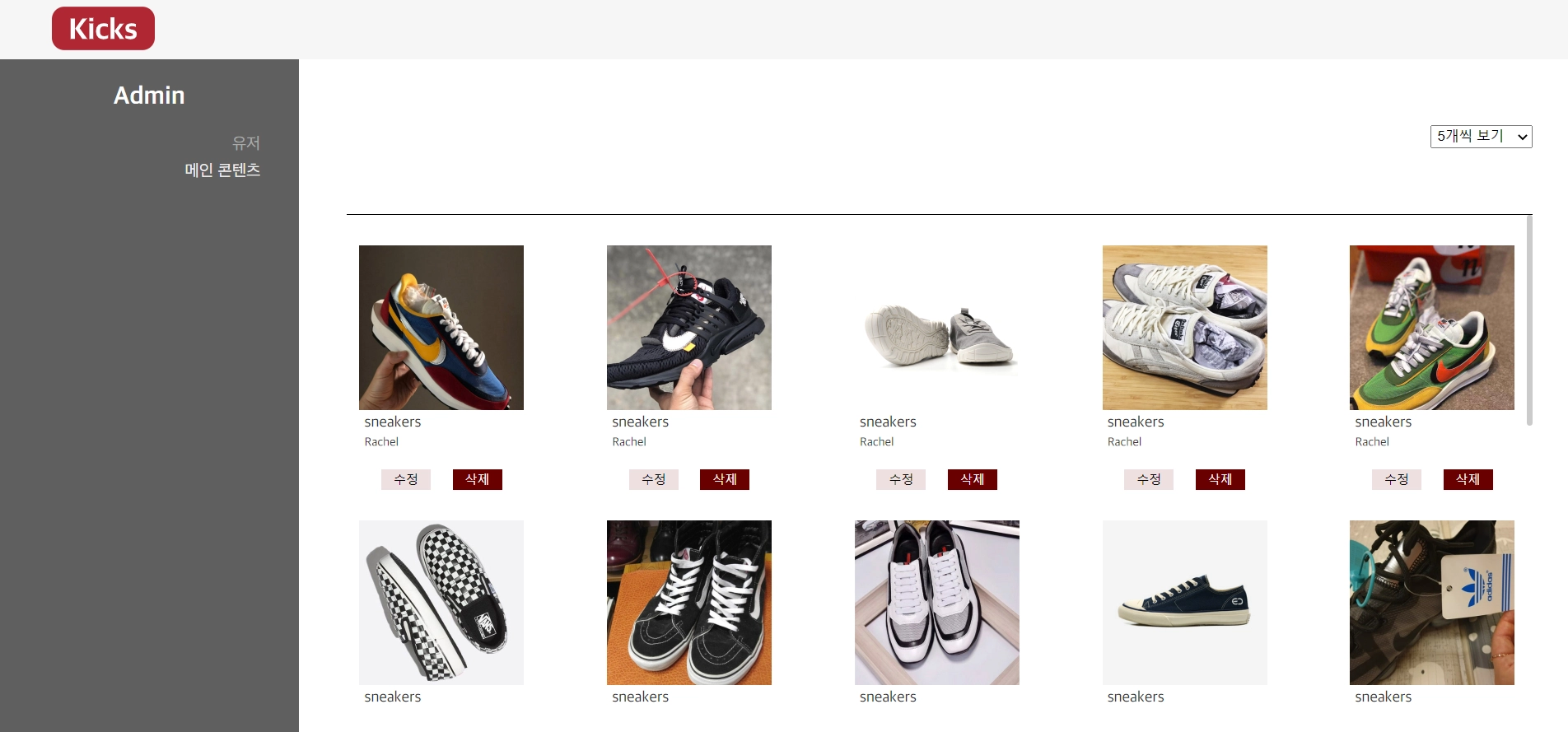Kicks는 스니커즈를 좋아하는 사람들을 위한 숏폼 형식의 중고거래 플랫폼입니다. 웹 기반 프로젝트지만 스와이프 조작과 직관적인 인터렉션을 통해 사용자가 모바일 앱과 유사한 경험을 할 수 있도록 구현했습니다. 영상 기반으로 상품 정보를 제공하여 기존 중고거래 서비스와 차별화를 두었고 텍스트와 이미지만으로는 전달하기 어려운 스니커즈의 실제 상태를 생생하게 보여주도록 했습니다. 본 프로젝트는 Numble이라는 사이드 프로젝트 플랫폼에서 디자이너, FE 개발자, BE 개발자로 팀을 결성하여 1달간 진행했습니다.